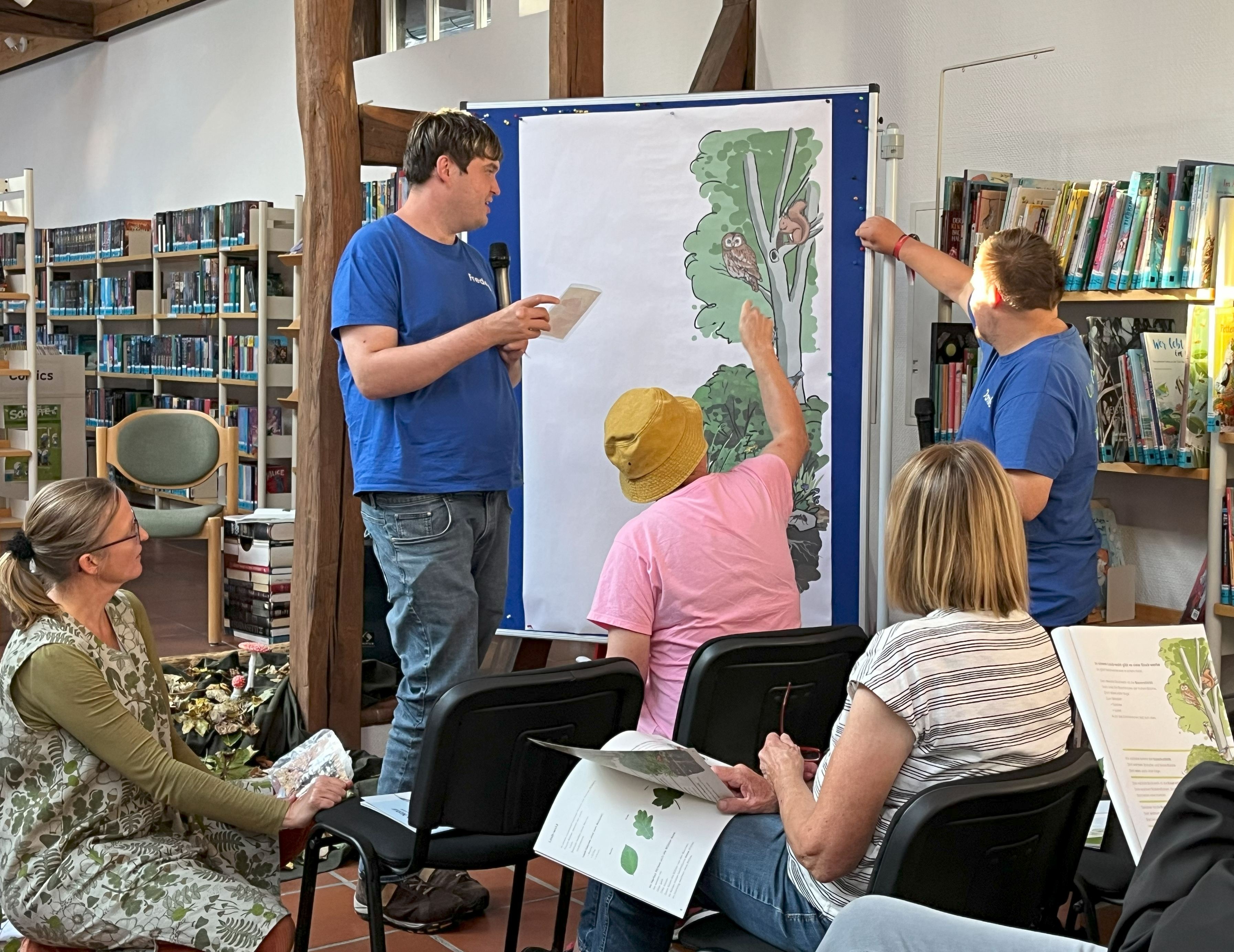 Von September 2024 bis Mai 2026 gehen wir auf inklusive Lesereise mit dem Lese·buch Natur in Leichter Sprache. Die Umwelt-Assistent*innen und andere Menschen mit Beeinträchtigung lesen gemeinsam mit uns Texte daraus vor. Aber es wird nicht nur gelesen – unsere Lesungen werden zu Indoor-Naturerlebnis-Veranstaltungen: Wir bringen Modelle und Präparate von Tieren mit und lassen die Balzgesänge von Vögeln und Amphibien erklingen – Seien Sie gespannt!
