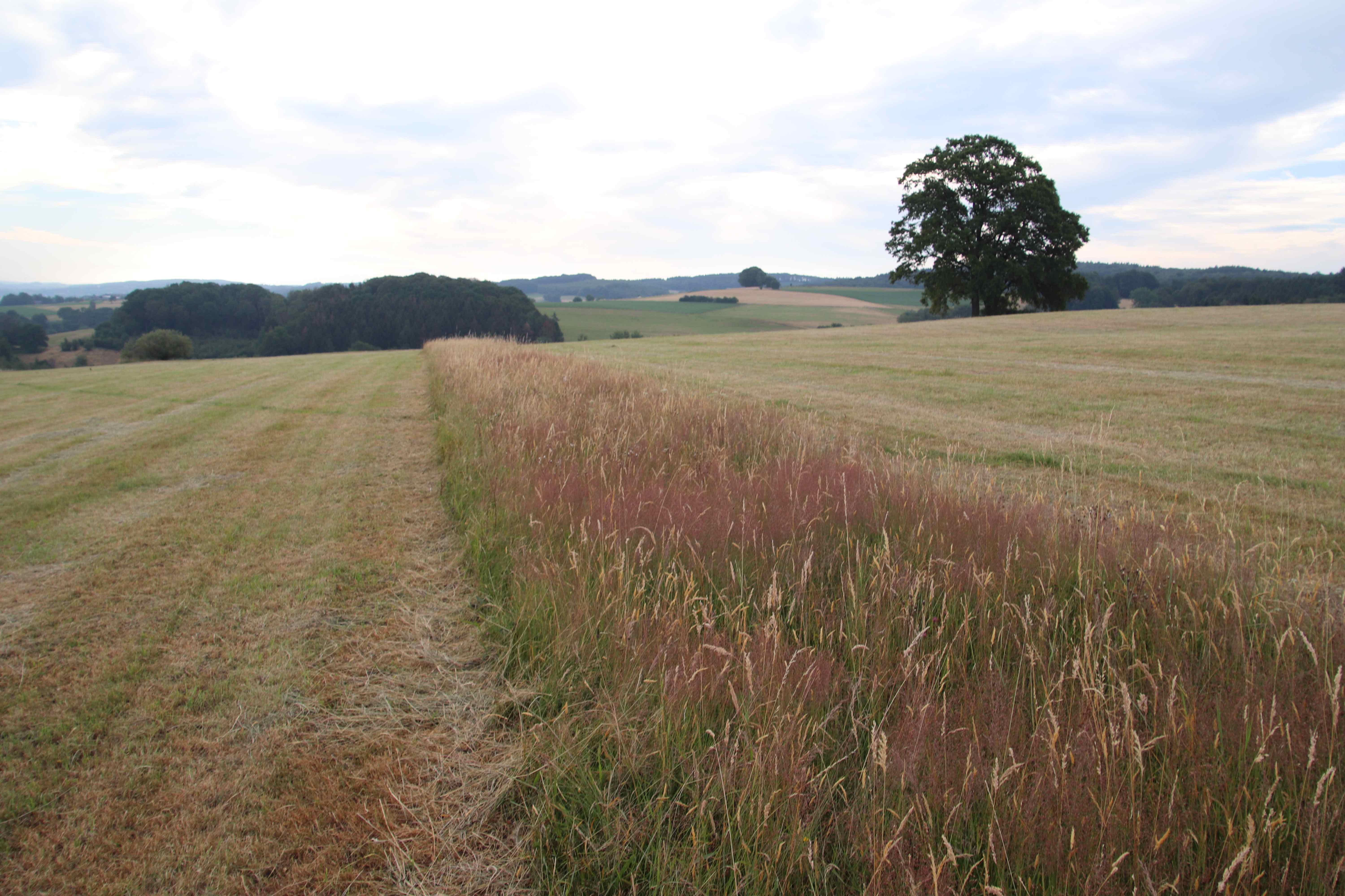 Beim nächsten Schnitt wird dieser Streifen wieder mitgemäht, dafür bleibt an anderer Stelle ein neuer Streifen stehen. Hierdurch wird einer zu starken Fehlentwicklung, beispielsweise durch eine Ausbreitung von Breitblättrigem Ampfer, auf der Fläche entgegengewirkt. Diese Streifen sind sowohl im ersten Grassilageschnitt hilfreich, als auch in später gemähten Heuwiesen.