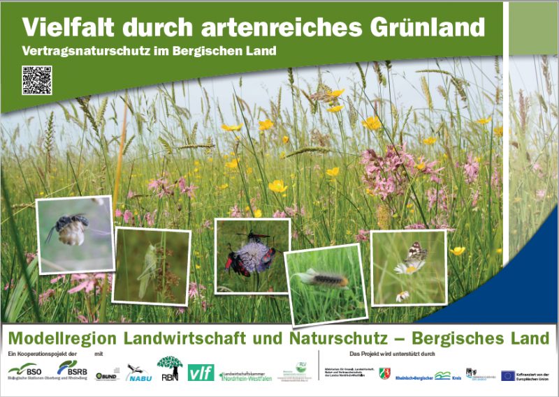 Im Rahmen der Öffentlichkeitsarbeit der Modellregion Landwirtschaft und Naturschutz wurden Plakate entworfen, die die Möglichkeiten des Vertragsnaturschutzes beschreiben und zeigen, dass Landwirt*innen sich im Bergischen Land für Natur- und Umweltschutz einsetzen.