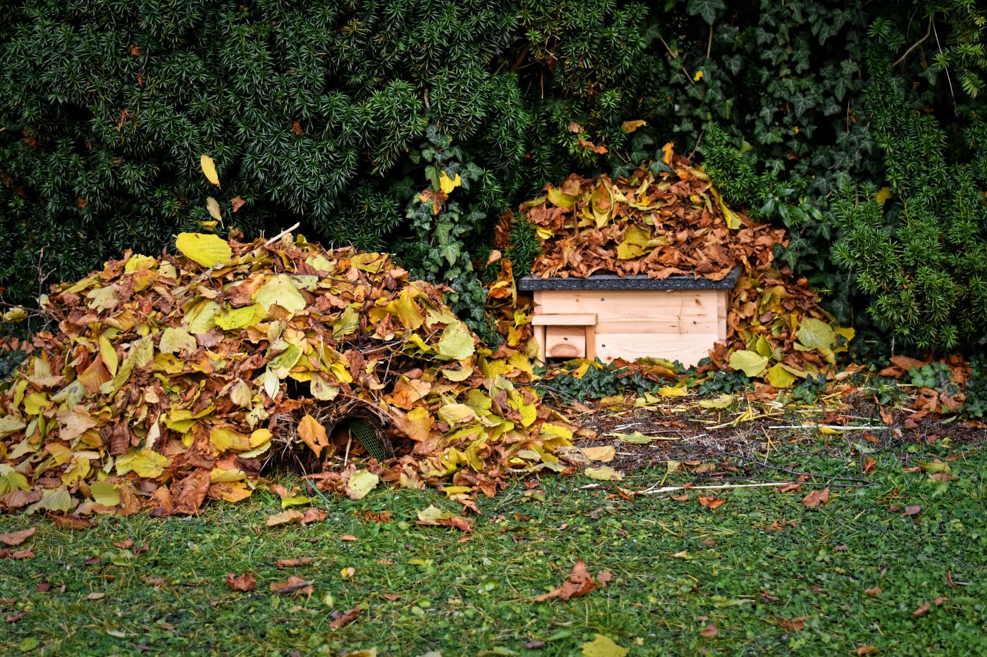 • Unterschlüpfe wie Laub- oder Reisighaufen, Holzstapel oder bewusst belassene naturnahe Bereiche